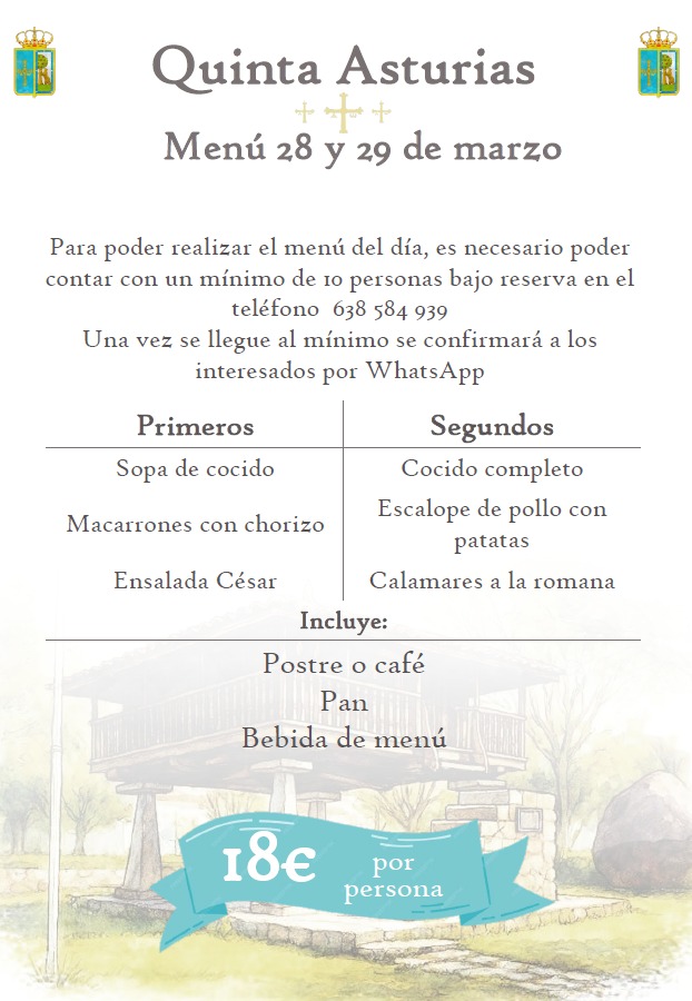 En el Bar Sueve, este fin de semana nos proponen el siguiente Menú. Ya puedes reservar y disfrutar de la primavera en la Quinta.